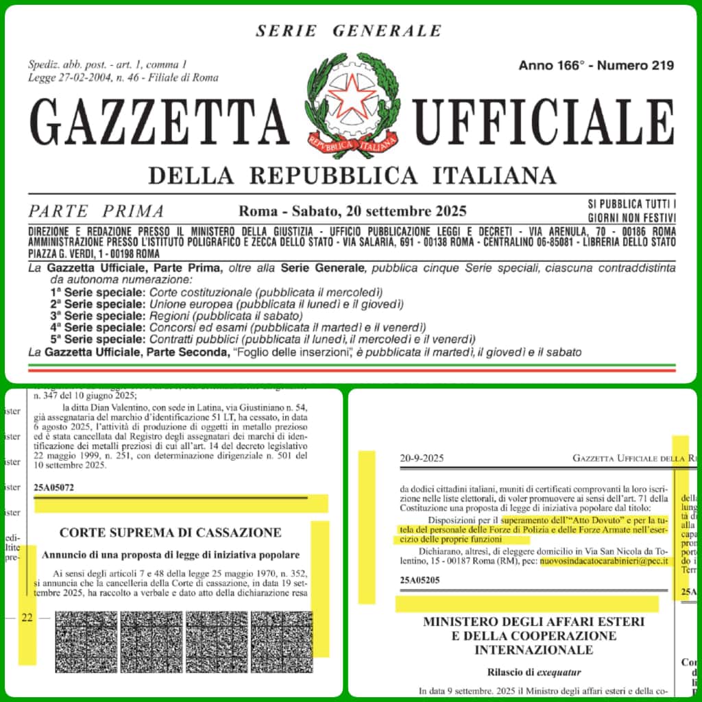 La proposta mira a rafforzare la tutela e il quadro normativo per il personale delle Forze di Polizia e Forze armate e a raccogliere 50.000 firme. La raccolta delle firme si concluderà in data 28 febbraio 2026. Per maggiori informazioni vedasi allegati.